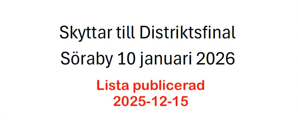 Här är den preliminära lista med skyttar för Skyttiadens Distriktsomgång., publicerad 15 december.