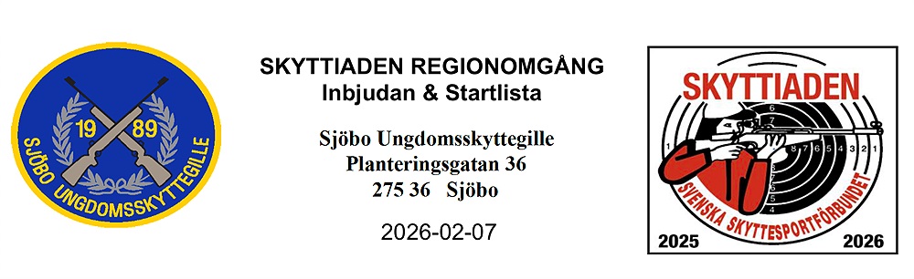 Publicerade starttider för SKYTTIADEN regionsomg i Sjöbo 7 februari.